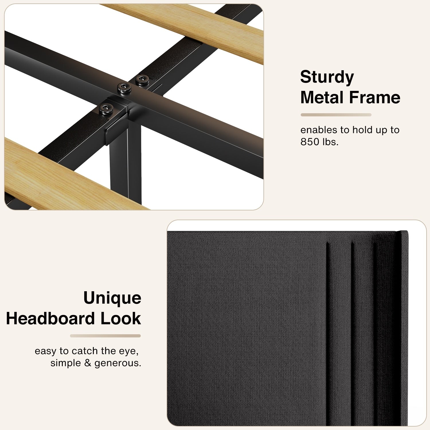 • Assemblage facile : ce cadre de lit est simple à assembler avec tous les outils et instructions inclus, vous pouvez donc l'installer en un rien de temps et profiter de son confort et de sa beauté.