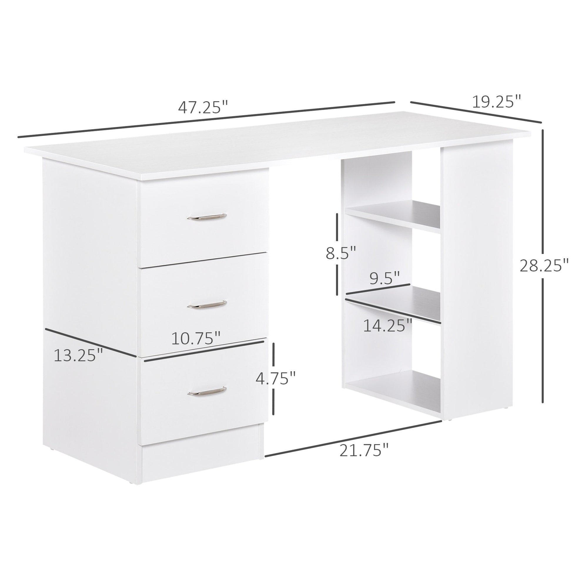 Bureau d'ordinateur moderne HOMCOM 47, bibliothèque, table d'écriture,...