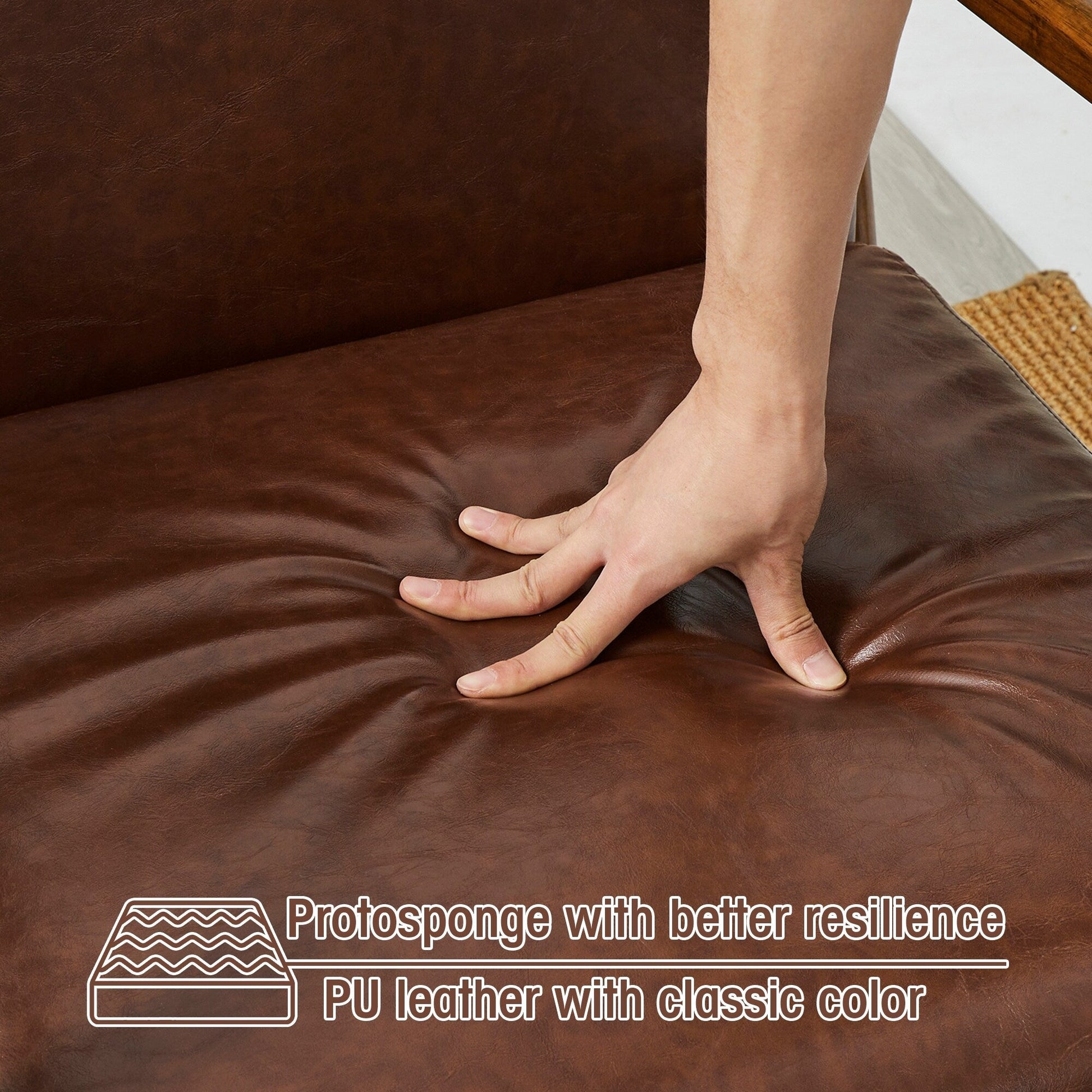 - Matériau : Bois d'hévéa 25 %, cuir PU 20 % et mousse 45 %