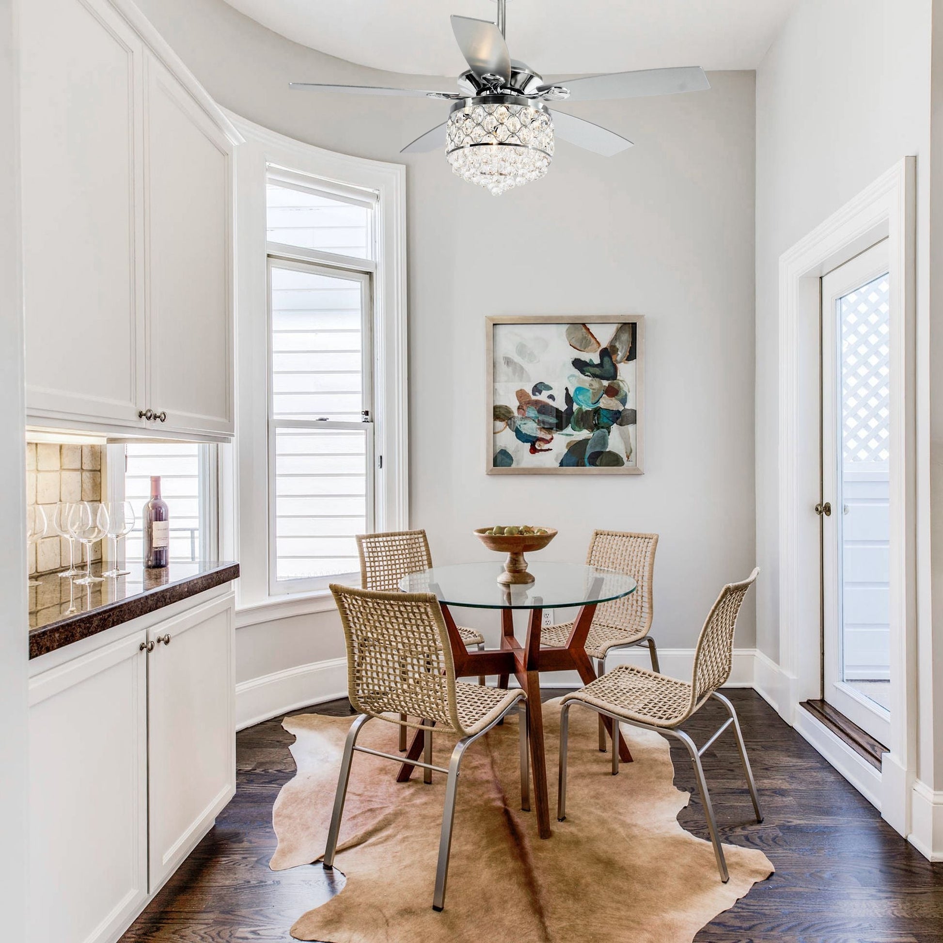 Lustre/ventilateur de plafond à 4 lumières en chrome/cristal...