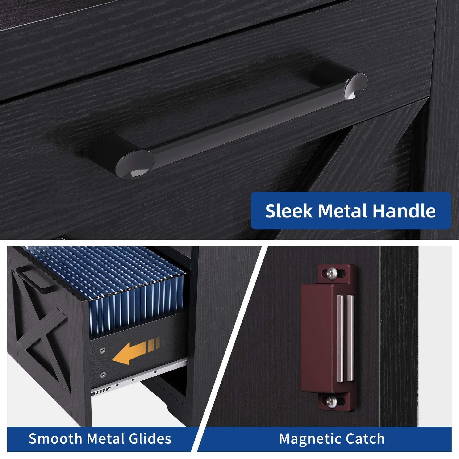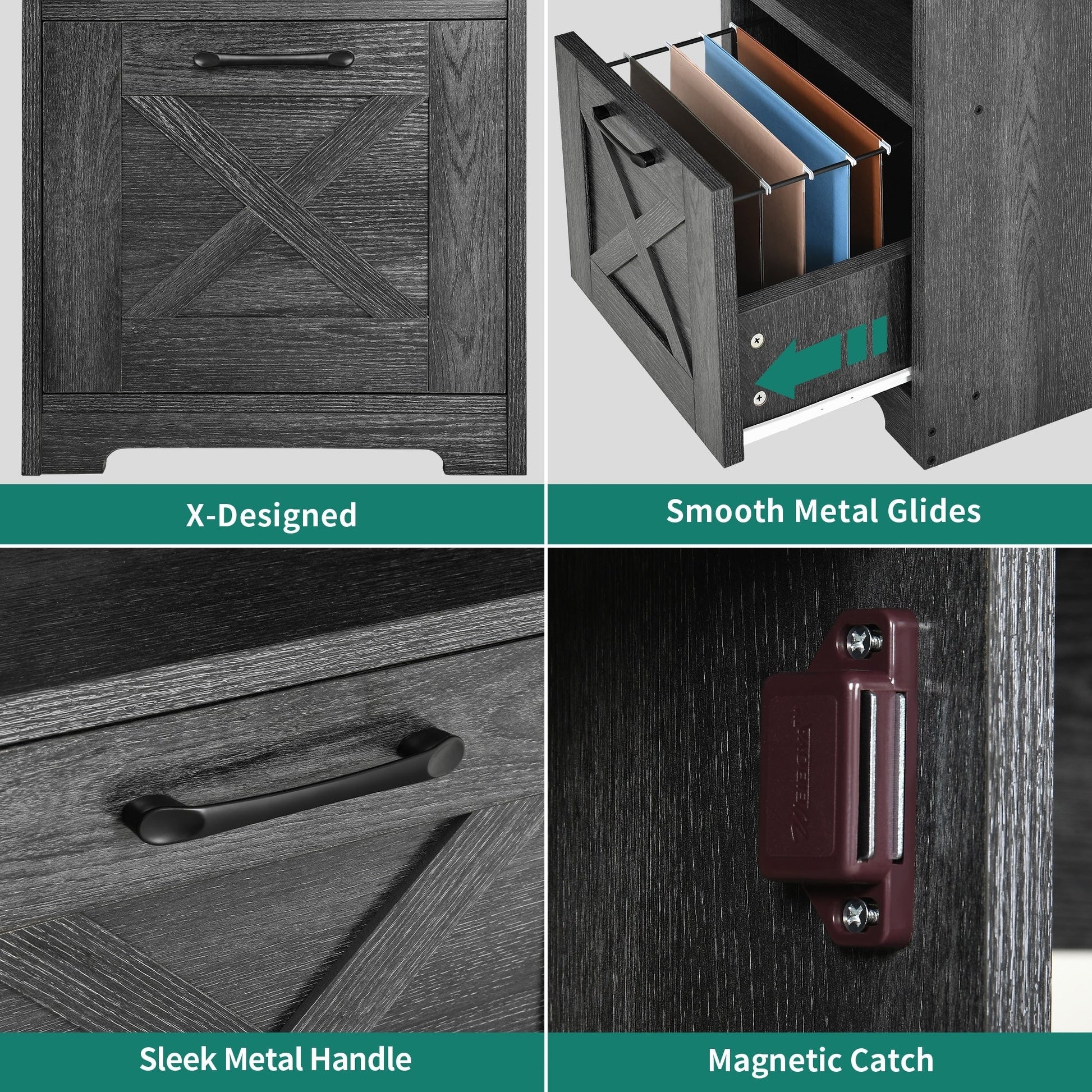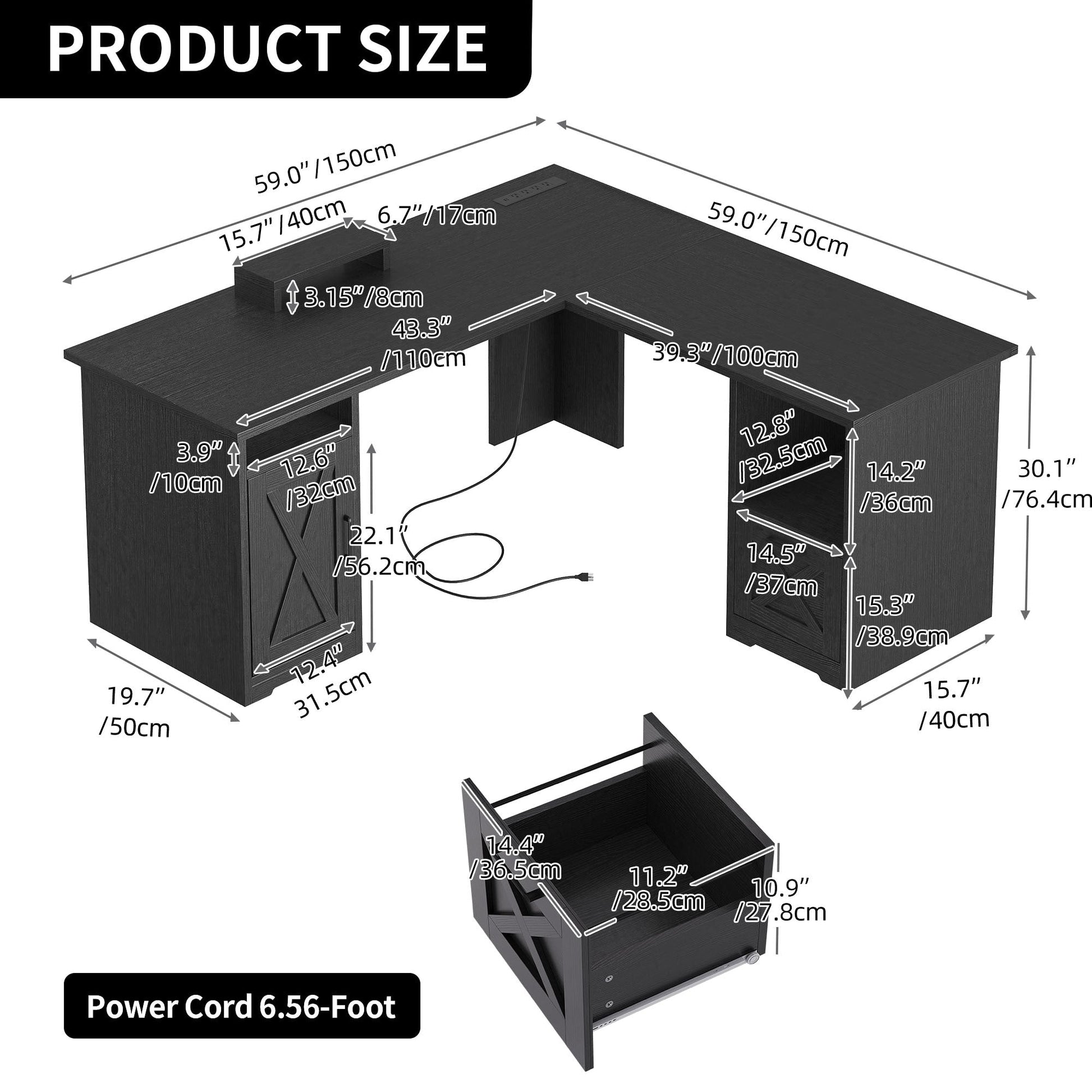 4. Organisez vos affaires et gagnez de la place avec ce bureau d'ordinateur en L. Il comprend un tiroir classeur avec barres de suspension réglables pour les documents au format Lettre/A4, une armoire de rangement et deux étagères ouvertes pour ranger livres, magazines, dossiers, lettres et autres fournitures.
