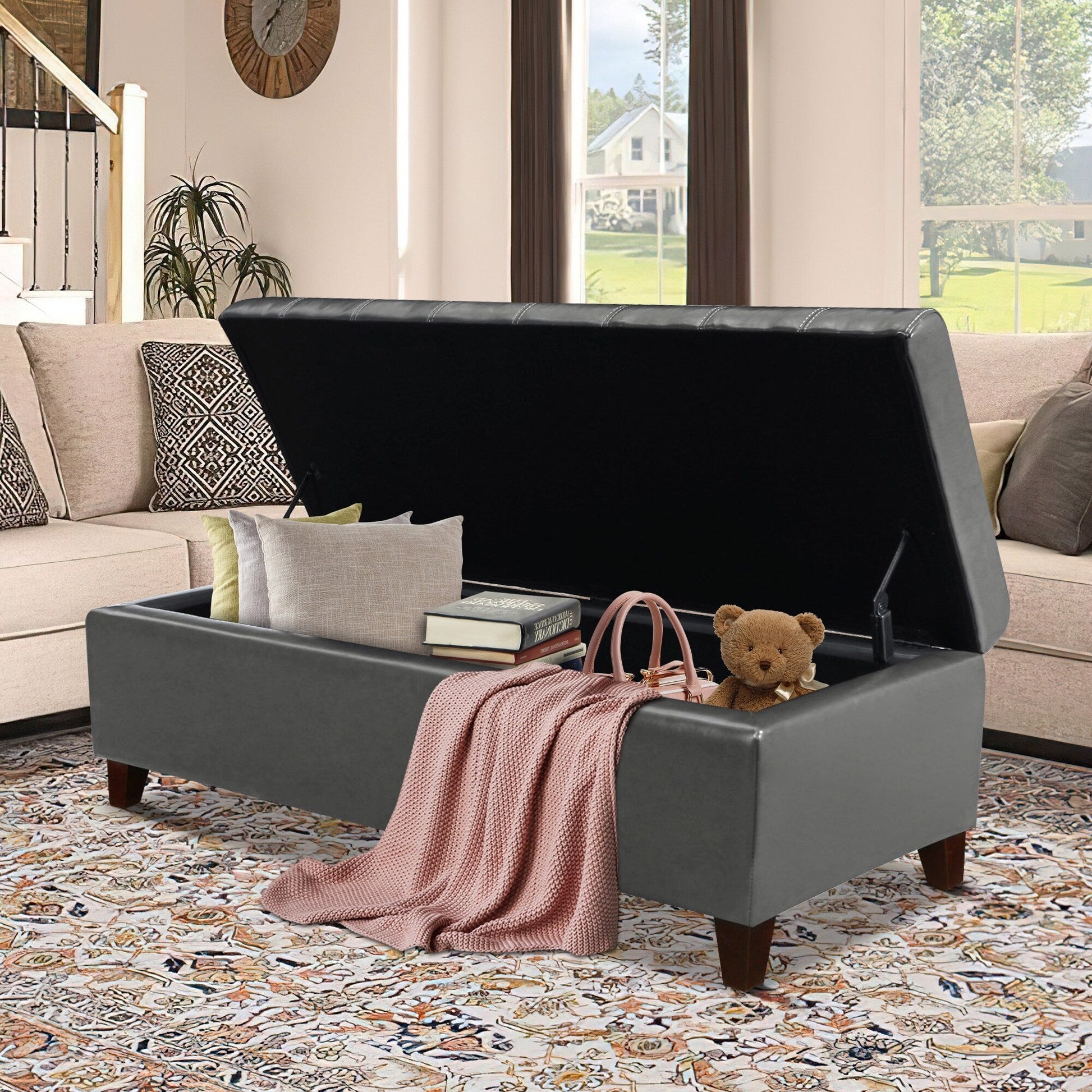 Banc ottoman de rangement en cuir reconstitué Adeco...